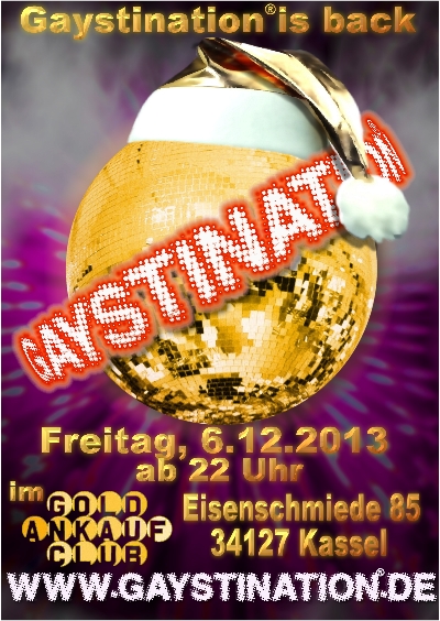 Gaystination is back und läutet mit euch am 6.12. die Weihnachtssaison ein. Frau Nikolaus DJane Lissy verwöhnt euch und das Tanzbein mit den Knallern aus den 80er und 90er Jahren sowie von heute... Wünscht euch die abgefahrensten Christmas-Songs und lasst die Glocken klingen!!!
